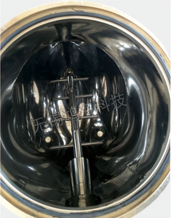混料筒一般用不銹鋼制作,內(nèi)外壁拋光,結(jié)構(gòu)設(shè)計上保證無積料死角,清洗方便徹底。筒體上部有兩個進料口,下部有一個出料口。桶體可用手任意轉(zhuǎn)動,以便于出料。如用戶需其它材料可在訂貨時提出。