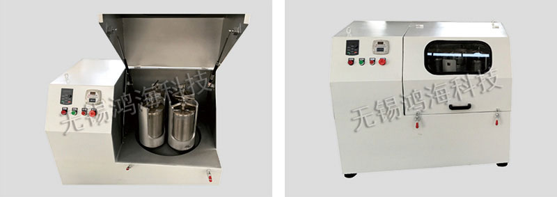 行星式球磨機是在一轉盤上裝有四個球磨罐,當轉盤轉動時,球磨罐隨著轉盤轉動,同時球磨罐在齒輪的帶動下自身由中心軸帶動作行星運動,罐中磨球在高速運動中做不規(guī)則運動產(chǎn)生沖擊、剪切、研磨力達到研磨和混和樣品的目的。行星式球磨機能用干、濕兩種方法粉碎和混和粒度不同,材料各異的產(chǎn)品,效率高、效能大、研磨產(chǎn)品粒度可小至0.1微米(即1.0×10-4mm)甚至納米。